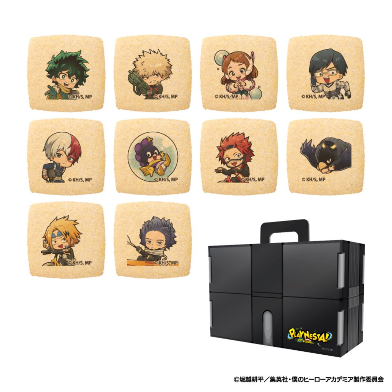 原材料名:小麦粉(国内製造)、砂糖、マーガリン、ショートニング、鶏卵、精製塩/香料、着色料(青1、黄4、赤102、赤106、カロテン)、乳化剤、酸化防止剤(V.E)、(一部に小麦・卵・乳成分・大豆を含む)